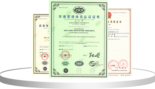 先后取得北京市建設委員會核發(fā)的機電工程專業(yè)承包、裝飾裝修專業(yè)承包、建筑智能化專業(yè)承包等多項專業(yè)承包施工資質;并順利通過ISO9001、T50430質量管理體系認證,ISO14001環(huán)境管理體系認證和OHSAS18001職業(yè)健康安全管理體系認證,完成三個體系的整合認證工作。